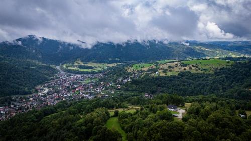 A recently renovated chalet, Siedlisko Pod Szczerbakiem offers accommodations in Szczawnica. This property offers access to a terrace, free private parking, and free Wifi. The chalet has an outdoor fireplace and a sauna. The air-conditioned chalet consists of 4 bedrooms, a living room, a fully equipped kitchen with a dishwasher and a coffee machine, and 4 bathrooms with an a bath or shower and a hair dryer. Guests can take in the views of the mountain from the balcony, which also has outdoor furniture. The accommodation has a fireplace. For those times when you'd rather not eat out, you can cook on the barbecue. For guests with children, the chalet features an indoor play area and an outdoor play equipment. After a day of skiing, cycling, or hiking, guests can relax in the garden or the shared lounge area. Niedzica Castle is 12 miles from Siedlisko Pod Szczerbakiem, while Bania Thermal Baths is 26 miles from the property.