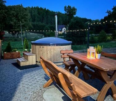 24 miles from Train Station in Brodnica, Siedlisko Złota Góra domki całoroczne na Kaszubach offers accommodations with access to a hot tub, spa facilities, and beauty services. This chalet provides free private parking and a 24-hour front desk. Guests can make use of the outdoor fireplace or the children's playground, or enjoy views of the inner courtyard and quiet street. The chalet provides guests with a terrace, garden views, a seating area, a flat-screen TV, a fully equipped kitchenette with a dishwasher and a toaster, and a private bathroom with hot tub and a hair dryer. A fridge, a stovetop, and kitchenware are also provided, as well as a kettle. The rooms are equipped with heating facilities. Guests can make the most of the warm weather with the property's barbecue facilities. For guests with children, Siedlisko Złota Góra domki całoroczne na Kaszubach features an indoor play area and a baby safety gate. Guests at the accommodation can enjoy darts on-site, or go skiing or cycling in the surrounding area. Gdansk Zaspa is 26 miles from Siedlisko Złota Góra domki całoroczne na Kaszubach, while Olivia Hall is 27 miles away. Gdańsk Lech Wałęsa Airport is 19 miles from the property.