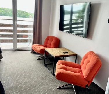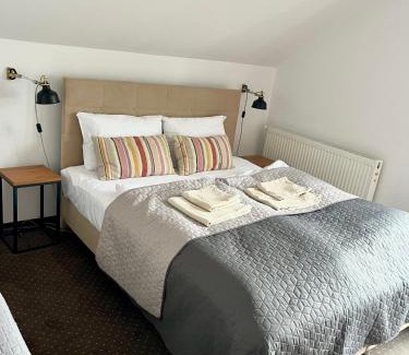 Sielanka nad Junem enjoys a location in Mrągowo, 13 miles from Święta Lipka Sanctuary and 1.4 miles from Townhall of Mragowo. This beachfront property offers access to a balcony, a pool table, free private parking, and free Wifi. On clear days, guests can head outside to enjoy the vacation home's outdoor fireplace, or simply kick back and relax. At the vacation home, every unit is fitted with a wardrobe, a flat-screen TV, a private bathroom, bed linen, and towels. The vacation home features some units with lake views, and each unit comes with a coffee machine. The rooms are equipped with heating facilities. The vacation home has both a sun terrace and garden where you can relax, along with a private beach area. Mrongoville is 1.7 miles from Sielanka nad Junem, while Tropikana Aqua Park is 16 miles from the property. Olsztyn-Mazury Airport is 40 miles away.