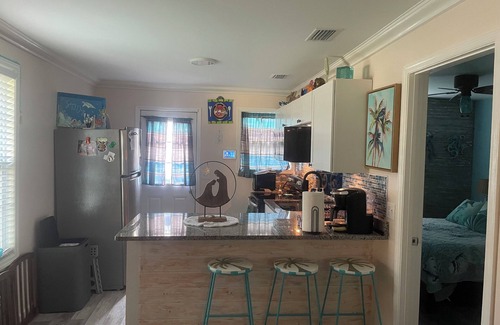 This cozy cottage in Brunswick offers a retreat for guests. With 2 queen beds and 1 trundle bed in the 2 bedrooms, there are plenty of beds for different arrangements. The bathroom features a shower and a hair dryer for added convenience. In the living room, you'll find a single sofa bed and a futon for extra sleeping arrangements. Whether you're relaxing in the AC or exploring the area, this adorable home has everything you need for a wonderful stay. There is a bar around the corner with live bands sometimes on the weekends. You can sit on the porch and listen to the music. Neighborhood is safe. It is close to Golden Isles beaches, Blythe Island Regional Park and Brunswick. The house is cleaned thoroughly between guests. NO REFUNDS FOR FALSE REVIEWS.