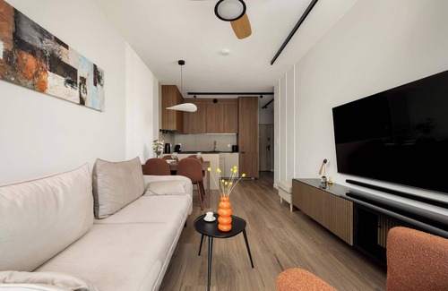 We invite you to an apartment designed with comfort and convenience in mind. Ideal for guests who want to discover the charms of Wroclaw, staying in a unique place. The living room is a stylish place to relax with a comfortable sofa bed, coffee table and TV. You will also find a table with chairs, ideal for eating meals together. Relax in the bedroom, which offers a comfortable double bed. You will also find a TV, a work desk, bedside tables and a spacious wardrobe. The kitchenette is ready for all your culinary needs. It is equipped with an induction hob, oven, microwave, electric kettle and fridge with freezer. A coffee machine will provide delicious, aromatic coffee. The bathroom has a shower, toilet and washbasin. You will find a cabinet for toiletries, a mirror and fresh towels. There is also a hairdryer and washing machine at your disposal. Stay in touch and have fun thanks to Smart TV and free Wi-Fi access throughout the apartment. This apartment offers a harmonious combination of comfort, functionality and modern amenities, ensuring a wonderful stay.