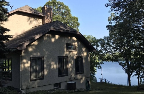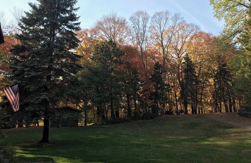 RED, ORANGE, YELLOW!!! The fall trees will be changing color soon. September 25-October 15 are peak tree color dates. Attention Autumn Color Chasers! Maplewood State Park, with its rolling hills and incredible forest are a 10 minute drive. More colors! Luxury lake home & PONTOON RENTAL in a beautiful, quiet wooded setting. Perfect for family getaways, family reunions, holidays, corporate retreats, etc. Cozy private log cabin for two on site as well. Sand beach with hard sandy bottom lake for good swimming, boating & good fishing. Deer & wild turkeys frequently visit. Huge kitchen, pantry & dining room with large table for 12 & counter seating for 6. Fire pit. 2 large decks, gas grill & 4 picnic tables. 3 -65" smart TV's. Dock & 22' PONTOON BOAT FOR ADDITIONAL RENTAL FEE. Pets welcome. Great golf courses nearby.