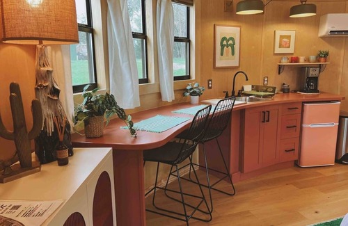 100% custom built by us and 100% brand new everything! New Memory foam mattress with soft high thread count linens. Hypoallergenic down alternative comforter. Fast wifi and smart tv with Amazon prime, HBO, Hulu, Netflix. Soft terrycloth robes provided with tankless water heater so you never have to worry about running out of hot water. Good shower pressure and all fixtures are brand new. Hairdryer, shampoo, conditioner, and body wash provided. New Mini split heating and AC. Basic cooking utensils, hot plate, drip coffee maker + ground coffee, small closet with hangers, bluetooth speaker, record player, fan, chimenea fireplace with complimentary wood and starter log for your first night. Additional wood can be purchased.