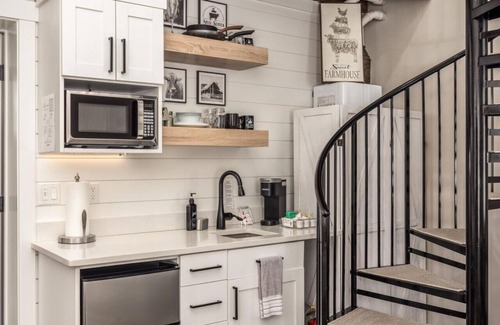 This Silo sleeps 1 to 4. It has 2 queen beds, kitchenette with fridge, microwave, and full dining utensils for 4. Openconcept, valuted ceiling . Loft with bed. Minisplit HVAC with whisper quite AC and Heat, Walk in shower, Firepit and BBQ, Free Wifi