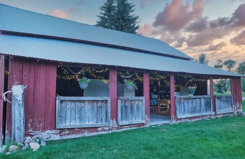 Forget your worries in this serene ranch setting. This is a 2 bedroom cabin with 1 bathroom. It has a front and back deck, kitchenette with dishware, manicured lawns and access to outdoor areas including 2 pickleball courts, an outdoor kitchen, Rainey Creek river that joins the fly fishing mecca Snake River and a magazine photo shoot arbor at the foot of Baldy mountain make this memorable vacation spot worthy of return year after year.