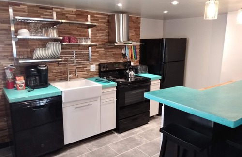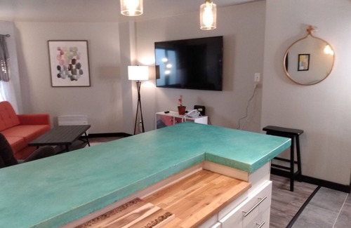In the living room there is a sleeper sofa and a recliner. A queen size auto inflate air mattress can be provided if preferred to the sleeper sofa. For entertainment there is a 70" smart tv with access to Netflix, Sling and Amazon Prime.