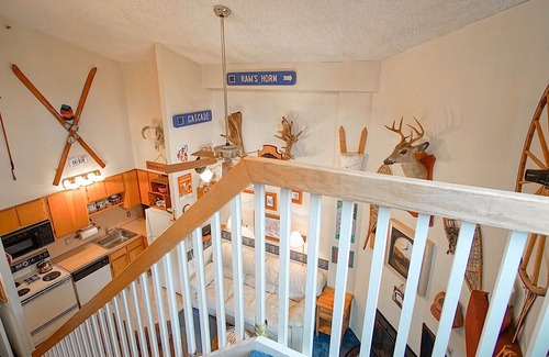 SILVER CREEK #5216 - 2 BEDROOM, 2 BATHS - BEDDING: MASTER Queen, BR #2 set of twin bunk beds with a trundle and a full-sized bed. This cozy unit has a log burning fireplace (wood must be purchased in the Locker Room Sports Bar located in the lobby of Silver Creek).