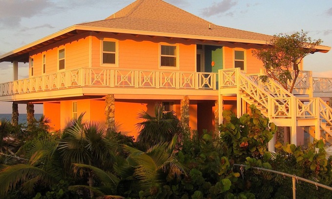 Spacious beachfront home with three bedrooms/baths upstairs and large overflow room and bath for six additional guests downstairs. Spend the day on the wrap-around terrace enjoying the ocean breeze. Read a book, fall asleep. Walk on the beach, take a dip. Paddle board along the coast or kayak to one of the four nearby islands. Nothing to do, but so much to experience. Outside shower, kayaks, paddle board, beach games. Starlink internet gives you full coverage, if you desire it. Great room boasts large kitchen with gas range, dining table for ten, and comfy sofas to relax or watch your favorite shows. Nothing beats the view. Gather the family around the large table and try your luck at dozens of board games, jigsaw puzzles, or cards. Put an umbrella in your drink and soak in the ocean in the late afternoon. Take a ride to the nearby caves for more beautiful views. Go down to "the bajito," the flats at low tide, or take a kayak through the mangroves. Enjoy the best burgers on the island at The Beach Club. Order Bahama bread from Coolie Mae's, where you can also enjoy the most beautiful sunset in the Berry Islands. What's your silver lining?