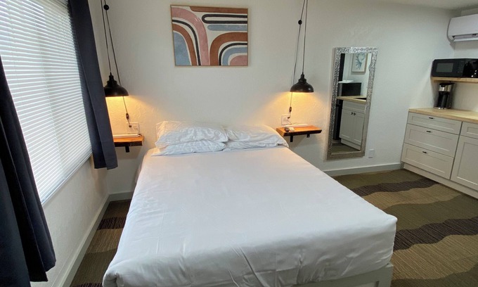 All rooms have been completely updated and remodeled to include new kitchenette, new bathrooms with walk in shower and new everything inbetween! All rooms feature a new 12 inch queen size mattresses, ice cold AC, soap/conditioner/body wash dispensers, 50 inch TV and local redwood accents.