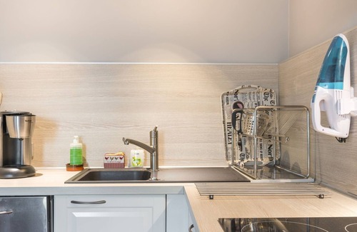 Layout: Ground floor: (Living room(double sofa bed, TV, seating area, balcony or terrace), Kitchen(dining table, boiling water tap, coffee machine, oven, microwave, dishwasher, fridge-freezer), bathroom(shower, washing machine))