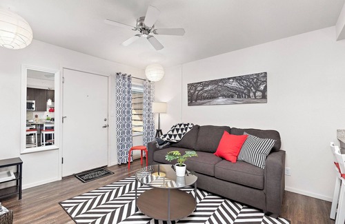 ❂The one-bedroom apartment is filled with clean lines, a modern look, black and white design elements, and a romantic flair. The space is aesthetically pleasing and very welcoming for your stay.