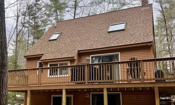 Located in the heart of the White Mountains, this cozy single- family home features a peaceful idyllic setting in the woods. Boasting three levels and two living room areas so families can spread out, this is the perfect vacation rental. In the warmer months, relax and unwind on the spacious wraparound deck while listening to the babbling brook that runs through the back yard. Enjoy the convenient location near many recreational activities and adventures and create memories to last a lifetime!