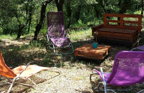 Detached house on 20 hectares, near the provencal village, very pleasant and quiet, ideal relaxation, dirt road 400 m. Shaded terraces, garden furniture. Private River. Ground floor: living room-kitchen, living room with TV (VCR) and 1 bed 1 bathroom, wc. First floor: 2 bedrooms en-suite, 2 beds 1 place and 1 bed 2 places + 1 baby cot on demand. Electric heating. Fireplace insert (1/2 yard of wood €10). Maximum of 2 pets. On request baby equipment.