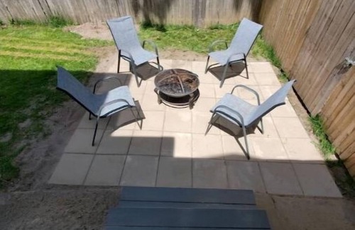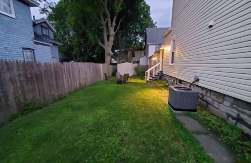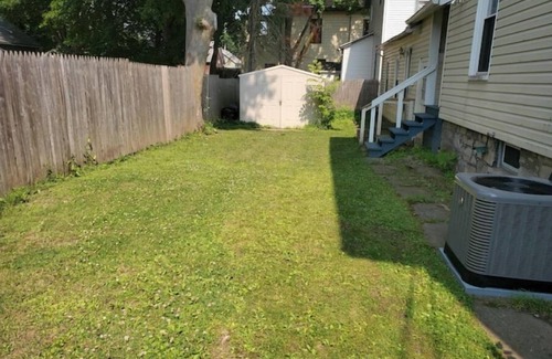 Our home is a 3 bedroom, lower portion of a tri-plex offering 1 king, 1 queen, 2 twins beds and 2 twin cot rollaways, fenced back yard with patio furniture and firepit, full kitchen pet friendly, washer and dryer access, central air. All bedrooms have smart tvs and 43" TV in living room, fast Wi-Fi. Please be mindful when parking, there are 2 designated parking spots in front of the home which is the paved area, please do not park on the cement pad.