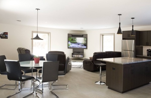 Modern design, clean lines and uncluttered space. Open floor plan and plenty comfortable seating for lounging and dining. Perfect for a quiet getaway week with plenty of outdoor things to do. It is less than a 10 minute drive to great bakeries, dinners and The Saxonburg Hotel Restaurant.