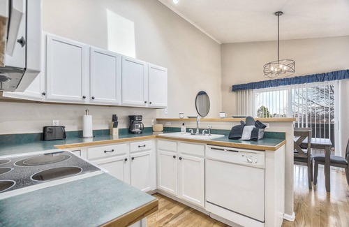 The open and contemporary floor plan home features new furnishings throughout. On entering the home, you'll be welcomed by a large living area highlighted by a cozy fireplace and Roku TV. The master suite includes a quiet workspace, additional fireplace, spacious walk in closet, walk in shower, and double vanities. Down the hall and thoughtfully separated from the master bedroom, you'll find two more inviting bedrooms with new queen beds and mattresses in each. These bedrooms share a hall bath containing a shower/tub combo. The full size laundry is ideally located in the hallway just across the hall. Enjoy cooking in the bright and spacious eat in kitchen which includes the basic cookware necessities, range, microwave, dishwasher, full size refrigerator and storage pantry. The dining table comfortably seats 6. Parking includes a one car garage with additional storage space and one driveway spot. Step out onto the rear deck to catch some amazing Colorado sunshine. Park access is just a few steps away.