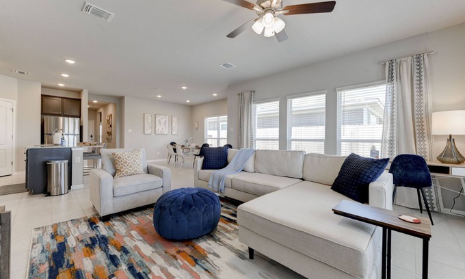 Welcome to our newly built 3 beds, 2 bath fully furnished home in Temple, Texas. This home is the perfect getaway for families, corporate, business travel workers. The home is located minutes from Baylor, Scott and White and VA hospitals, major freeways, restaurants and shopping and just a short drive to Georgetown, Killeen and Waco. Home comes with a well-equipped kitchen, work desk/chair, smart TVs, high speed fiber internet, washer/dryer.