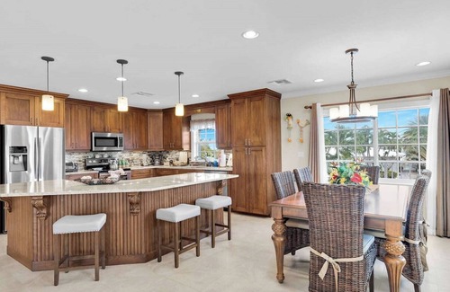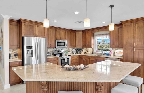 Enjoy a large, heated pool plus a tropical grotto with a built-in water slide that kids and adults will love. (Please note: the waterfall feature will not be operational during your stay, but all other outdoor amenities including the water slide are fully accessible.) Boater's Dream SetupThere are two 25-ft dockage areas for boats. With unbeatable access to open waters, you're set for epic fishing, snorkeling, or sunset cruising. (Boat lift not available for guest use.) Relax & Unwind in StyleTake in gorgeous panoramic water views from the wrap-around balcony or unwind in the screened-in porch, which connects to two of the three cozy bedrooms. Inside, you'll find a beautifully designed open concept living space with everything you need to relax in comfort. Ideal LocationJust a 3-minute walk to Sunset Park, a favorite local spot for soaking in Florida Keys sunsets, picnics, and beachside strolls. Key Amenities: 3 bedrooms sleeps 6 comfortably Heated pool + grotto with slide 50 ft. of dockage (2 x 25-ft sections) Screened porch & wrap-around balcony Fast Wi-Fi, full kitchen, washer/dryer Family-friendly layout Close to beaches, dining, and attractions