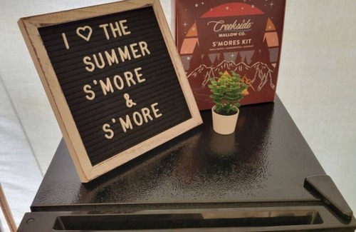 Your Glampsite will also include 2 hammocks, a wood fire ring with a cooking grate, string lights, 2 camp chairs and a picnic table.