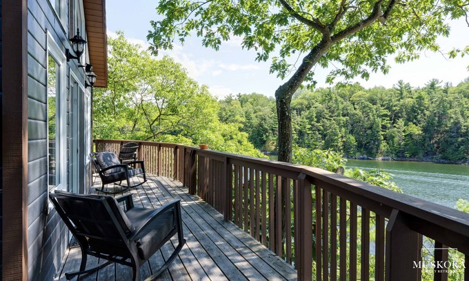 Situated on picturesque Twelve Mile Bay, this unparalleled one of a kind 4 bedroom + bunkie oasis provides guests with an amazing Muskoka experience! Only 2 hours north of Toronto, Harrison Trail takes full advantage of its prime secluded location which opens up into Georgian Bay for prime boating, fishing and fun water sports. Guests will also enjoy shopping excursions into historic towns of Bala and Gravenhurst for dining and one of a kind speciality shops.