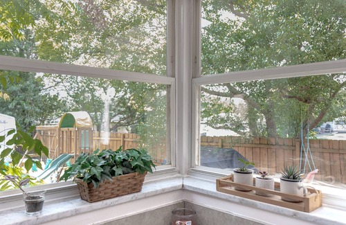 Shipping personnel may access the garage briefly on weekday mornings, but they will not disturb your stay. A privacy fence separates the yard from the garage entry area.