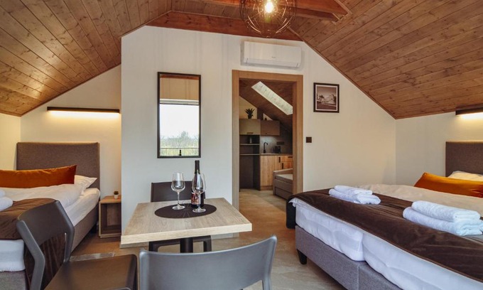 Skácelův dům provides air-conditioned rooms in Valtice. Both free Wifi and parking on-site are available at the homestay free of charge. Colonnade na Reistně is 1.9 miles from the homestay, and Minaret is 6.4 miles away. At the homestay, the units are equipped with a wardrobe, a flat-screen TV, a private bathroom, bed linen, and towels. A fridge, a stovetop, and kitchenware are also featured, as well as a coffee machine and a kettle. Additional in-room amenities include wine or champagne. If you'd prefer to cook in the comfort of your own space, you can make use of the kitchenette facilities. Guests at Skácelův dům will be able to enjoy activities in and around Valtice, like cycling and hiking. Chateau Valtice is a 14-minute walk from the accommodation, while Lednice Chateau is 5.1 miles away. Brno-Turany Airport is 39 miles from the property.