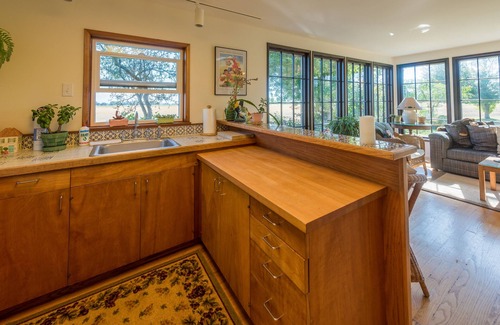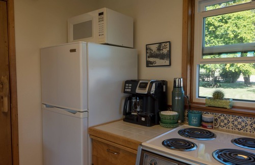 This private cabin is located on a 3-acre property in the middle of Skagit Valley farmland with an 1898 Victorian Farmhouse. The cabin has private views over farmland, with sunlight shining in huge windows from morning until late afternoon. Enjoy the full kitchen, and complimentary coffee, tea and snacks. The owners spend much of their time selling real estate in the Valley, but you may see them working in the yard or gardens.