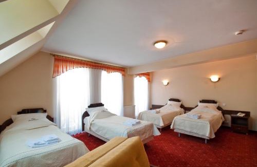 Skalny Dworek features a garden, shared lounge, a restaurant and bar in Nowy Targ. This 3-star hotel offers room service, a 24-hour front desk and free WiFi. The property provides nightclub and luggage storage space. At the hotel, rooms have a desk and a flat-screen TV. At Skalny Dworek each room includes a private bathroom with free toiletries and a hairdryer. Guests at the accommodation will be able to enjoy activities in and around Nowy Targ, like hiking, skiing and cycling. Bania Thermal Baths is 10 miles from Skalny Dworek, while Zakopane Railway Station is 13 miles away.