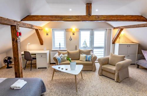 Skarbek Iława, pokoje i apartamenty enjoys a location in Iława, 13 miles from Stadium Lubawa and 21 miles from Polish Church in Prabuty. Housed in a building dating back to 2018, this resort village is 23 miles from Stadium Ostroda and 24 miles from Brodnica Lake District. There's a sun terrace and guests can access free Wifi and free private parking. At the resort village, each unit comes with a desk, a TV, a private bathroom, bed linen, and towels. Each room comes with a kettle, while certain rooms will provide you with a fully equipped kitchen with a dishwasher, a microwave, and a toaster. The rooms are equipped with heating facilities. For guests with children, the resort village offers an indoor play area. A bicycle rental service is available at Skarbek Iława, pokoje i apartamenty. Olsztyn-Mazury Airport is 77 miles away.