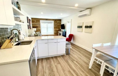 Welcome to Hills! Once known as Hill's Dairy in Meaford, this historic building has been converted into four rental units with an adventure shop. Steps to downtown Meaford, and minutes to Georgian Bay, Georgian Trail cycling route, the infamous Trout Hollow Trail, shops and restaurants, beaches, and 25 mins from Blue Mountain. This modern suite is the perfect year-round getaway spot to unwind after a day of exploring the area.