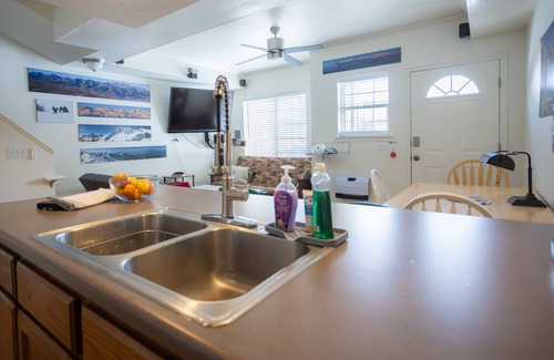 Located a block from the new Ogden Junction with many new resturants and Soloman Center, complete with I- Fly air tunnel sky diving, flow rider water park, bowling and Fat Cats Arcade with billards, bumper cars and pool tables, Golds Gym and a 13 megaplex movie theater with reserved seating. Also in the Junction is the Treehouse Childrens Museum.There are many fine art studios with a short walk. The townhouse is decorated with many panoramic images by a very well known and accomplished artist photographer Richard Caldwell.