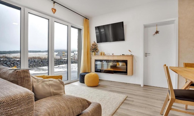 SKI Berg Klínovec offers accommodations in Loučná pod Klínovcem, 5.2 miles from Fichtelberg and 21 miles from Hot Spring. This apartment provides free private parking, private check-in and check-out, and free Wifi. The accommodation features a tour desk and bicycle parking for guests. All units comprise a seating area with a sofa and a fully equipped kitchen with various cooking facilities, including a dishwasher, an oven, a microwave, and a fridge. A stovetop and kitchenware are also provided, as well as a coffee machine and a kettle. At the apartment complex, all units are equipped with a wardrobe, a flat-screen TV, and a private bathroom. Skiing and hiking are possible within the area, and the apartment offers ski storage space. Market Colonnade is 22 miles from SKI Berg Klínovec, while Mill Colonnade is 22 miles away. The nearest airport is Karlovy Vary International Airport, 24 miles from the accommodation.