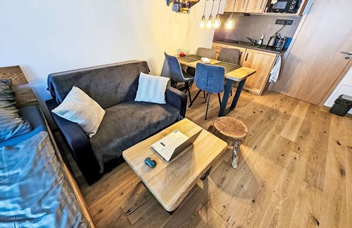 "Ski&Bike Siréna", 1-room studio. Spacious: living/sleeping room with 1 sofabed, 1 double bed and TV. Kitchenette (oven, dishwasher, 4 ceramic glass hob hotplates, toaster, kettle, microwave, freezer, electric coffee machine) with dining table. Shower/WC. View of the countryside. Facilities: Internet (WiFi, free). Parking at the house. Please note: suitable for families. Non-smokers only.