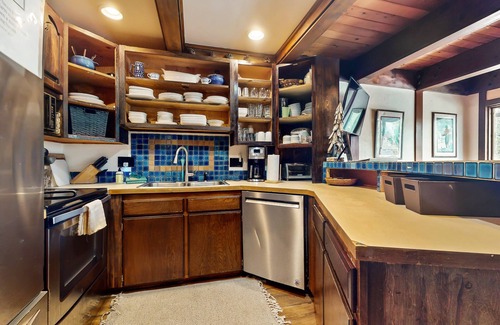 The kitchen features a brand-new dishwasher for your convenience, making cleanup a breeze. Unwind in the living area with a smart TV where you can log in to your favorite streaming services. On-site entertainment includes a foosball table, dartboard, and a variety of board games for guests of all ages.