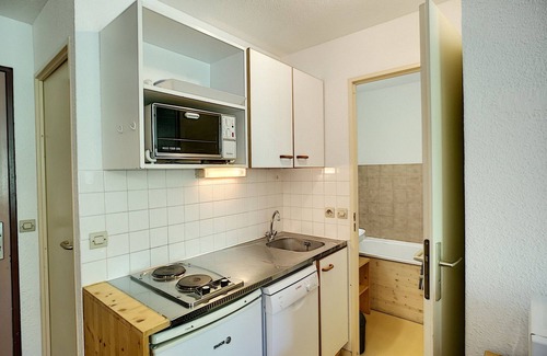 Ideally located 2 rooms equipped for 4 people, 24 m², 4th floor with lift. Balcony facing west with mountain view. Residence located at the foot of the slopes and shops.