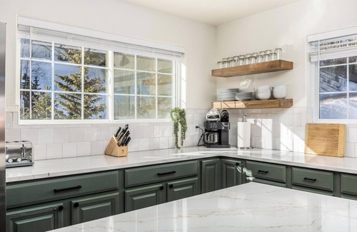 Cook up a big breakfast before hitting the mountain or a hearty dinner after exploring. The kitchen has everything you need for large group meals.
