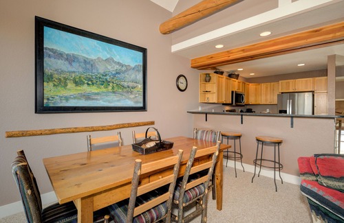The Montana Mountain Chalet ski-in/ski-out multi-level Saddle Ridge sleeps 8 people and promises to provide the cozy escape to the 'TOP of the World' that we are all looking for. The master suite is on the top level and the other 2 bedrooms, bonus room, and full bath are on the lower level. The outdoor private hot tub looks out at breathtaking mountain vistas of the Spanish Peaks Mountain Range. The main level boasts vaulted ceilings in the great room with rustic log accents, a flat screen TV, a gas fireplace, dining area, and open kitchen with breakfast bar.