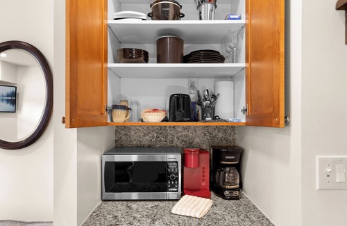 Craft your mountain culinary adventures with convenience, featuring Keurig and drip coffee makers, a microwave, a crockpot, and plates and silverware. From morning brew to quick meals, these food prep amenities ensure your comfort is always a priority.