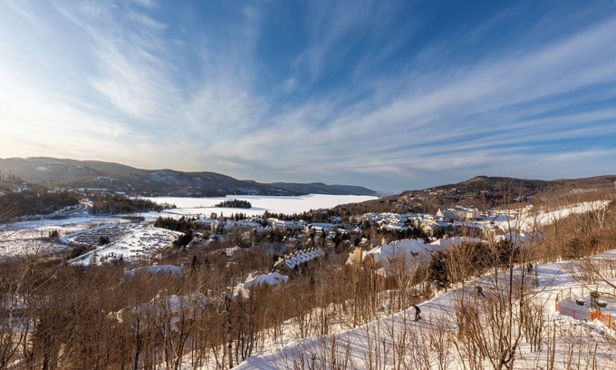 Completely renovated and newly furnished, our luxury condo is located high up on the mountainside in the "La forêt" domain, for a superb view from the large balcony on Lake Tremblant. True ski in ski out, direct access to the slopes which lead to 3 lifts (South and Soleil sides). 15 minutes walk from the pedestrian village (or shuttle), peaceful location. Swimming pool (06/21-09/01). Hot tub, indoor garage, fireplace, washer/dryer, ski locker, air conditioning,BBQ.