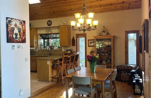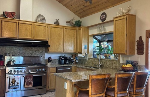 The home has approximately 1500 Square Feet of inviting living space with 2 bedrooms (master with King size bed & guest bedroom with one double - both in a beautiful log set), 2 newly remodeled bathrooms, a great room designed for entertaining with bar area and gas fireplace, dining room, kitchen newly remodeled with new granite counter tops and features a 48' Jennair Stove, pantry closet and laundry area. Sleeping sofa bed in the living room. Each bedroom Roku Televisions, living room television will require a Firestick, you are welcome to log into your subscription service of choice.
