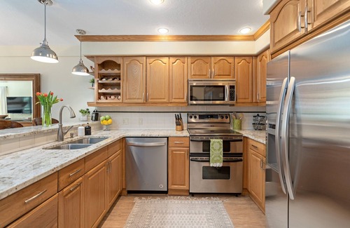 Condo Details: Newly remodeled and extremely well-appointed, our 2 BR/2BA, 1 KING Bed and 1 Queen, includes everything you need, plus fun extras to help you settle even deeper into vacation mode. Our Mountain Top Condo is just Steps to the Ski Hill, “Ski to the Driveway at the end of the day! You cant beat beat our location. We are located in an 8-unit complex which features a shared hot tub thats surrounded by pine trees. Look forward to new luxury linens, fluffy robes and fluffy towels in every room, plus a fully-equipped kitchen that will satisfy even the most discerning home chef.