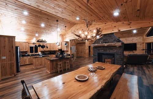 Set in the gorgeous Adirondack Mountains of upstate New York is our luxurious rustic themed log cabin: The Deer Pine Chalet; a newly built 4 bedroom and 3 ½ bathroom that sleeps 15. The cabin has high speed wireless internet, Spectrum cable TV with movie channels and an automatic backup generator. We have 6 neighborhood trails with a combined total of 10 miles for cross country skiing, snow shoeing, and hiking. The trails give you the option to enjoy mountain views or even hike to the neighborhood lake for a picnic - or bring your own canoes or kayaks and enjoy a day on the lake. All of the trails intersect with a trail entrance just a few steps away from the chalet