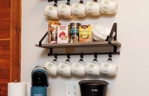 Two types of coffee makers: a 12-cup Mr. Coffee and a Keurig-style machine, with filters provided. Note: Coffee is not provided, so be sure to bring your favorite brew.