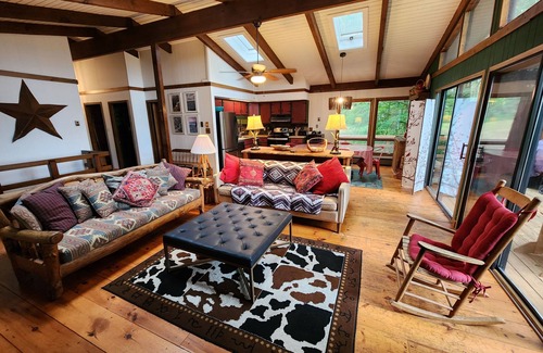 Nestled in the heart of Canaan Valley, this charming 4-bedroom cabin-chalet offers a unique and tranquil escape for your next vacation. Skier's View greets you with artisinal rustic charm, offset with modern conveniences. The two-sofa living room offers the possibility of a crackling fire in a glass-front wood stove/fireplace, perfect for unwinding after a day of adventure and-or turn on the large screen smart T.V. for game day or favorite movie.