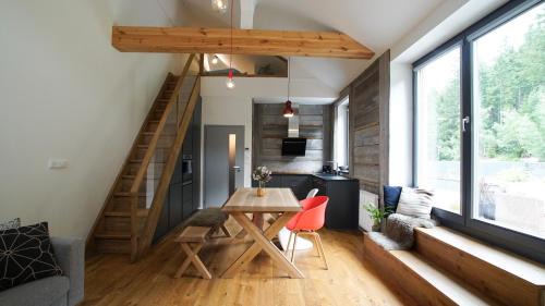 SKOG HARRACHOV duplex apartment is located in Harrachov, just 8.3 miles from Szklarki Waterfall and 8.3 miles from Kamienczyka Waterfall. This property offers access to a terrace, free private parking, and free Wifi. Dinopark is 10 miles from the apartment and Death Turn is 11 miles away. The spacious apartment includes 2 bedrooms, a fully equipped kitchen with a dishwasher and an oven, as well as a coffee machine. Towels and bed linen are available in the apartment. The property has an outdoor dining area. During the colder months, guests can enjoy winter sports in the surrounding area. Szklarska Poreba Bus Station is 8.8 miles from the apartment, while Izerska Railway is 9.2 miles from the property. Pardubice Airport is 72 miles away.