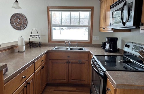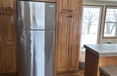 Enjoy a simple, yet stylish experience at this centrally-located cabin on Leif Lake. Come experience small cabin life with an updated flair. With 100 feet of lake shore, all you need is your swimsuit and fishing rod. Enjoy watching the sun rise while drinking coffee on the expansive lakeside deck. At night, roast marshmallows and enjoy your favorite beverage while reminiscing around the fire pit. SkyBelle is waiting for you.
