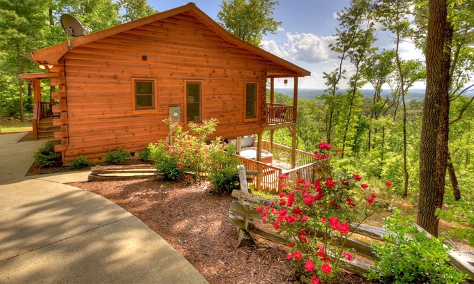 This beautiful Mountain Cabin has incredible long-range North Georgia Mountain views that you can enjoy from every window in the cabin. A beautiful outdoor deck, complete with wicker rockers and an inviting hot tub allows you to release all that built-up city stress. If you are up for a hike, just step out your door to explore the trails and this awe-inspiring view at every step.