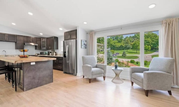 Tucked away in this sought-after neighborhood in Lake Geneva, Skyline Forest Retreat offers guests a peaceful & enjoyable stay in LG. Skyline offers ample space to entertain inside & out while still remaining close to all that the area has to offer; All this, without sacrificing the privacy and comforts of home. Guests are drawn to the clean & seamless designed space, the quality amenities & the picturesque courtyard, perfect for celebrations with loved ones & ultimate sky dazing.