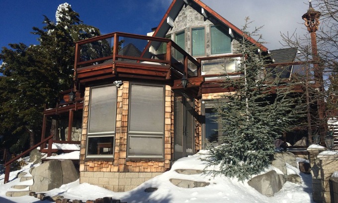 Beautiful 3-story house on 2 acres... and there are sled runs right on the property! Lots of parking (10 cars!) and only minutes from skiing, snow-tubing and Sky Park. Enjoy the amazing views (you can see Catalina Island on a clear day!), while relaxing in the glass enclosed indoor Jacuzzi after a day on the slopes. This gorgeous property is nestled between Big Bear and Lake Arrowhead so the best of both worlds can be enjoyed.