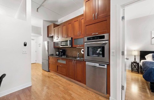 Sleek 2 Bed, 2 Bath Condo in Trendy Fulton Market is located in West Loop. Sleek 2 Bed, 2 Bath Condo in Trendy Fulton Market provides accommodation, featuring Air Conditioner, TV, Wheelchair Accessible, among other amenities. This Apartment features Air Conditioner, TV, Wheelchair Accessible, to make your stay a comfortable one.